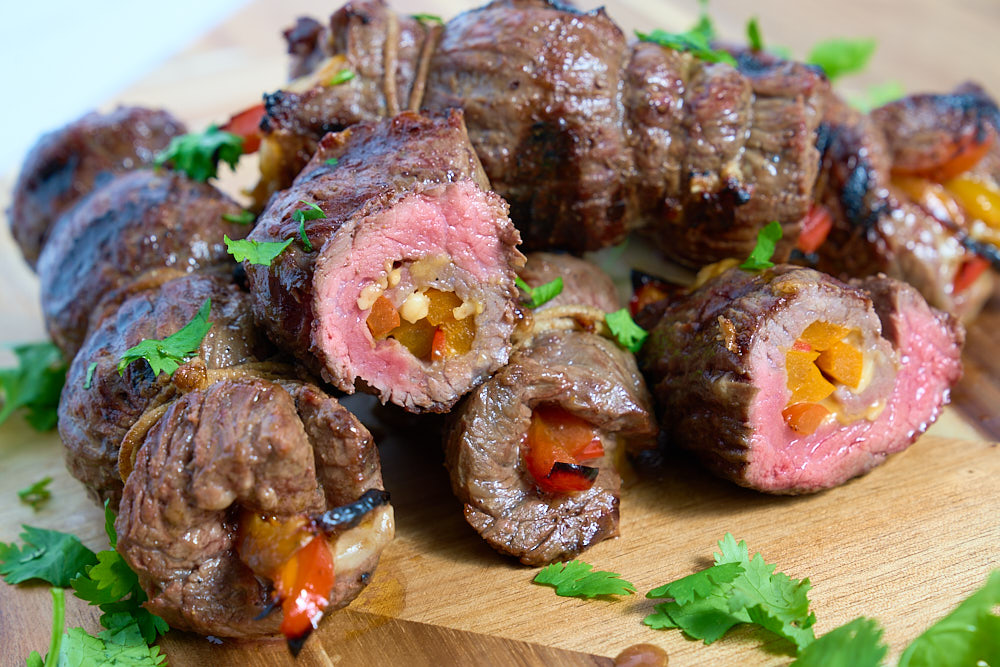 Grilling Rolled Skirt Steak Fajitas