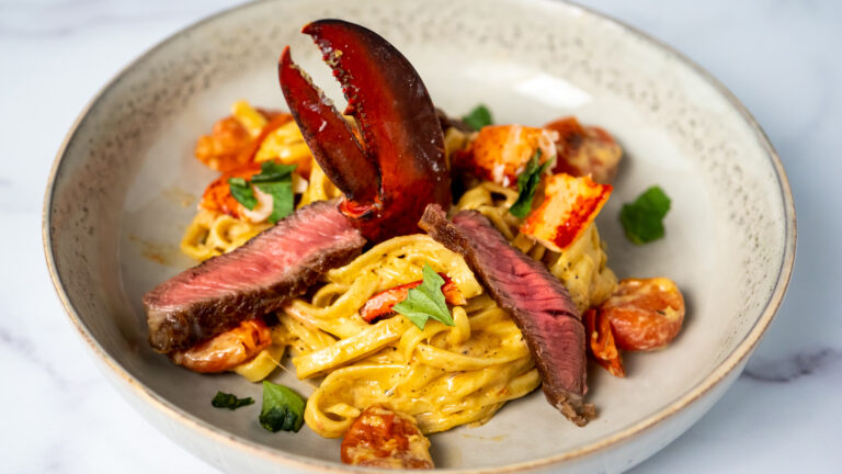 Steak and Lobster With an Ancho Chile Cream Sauce