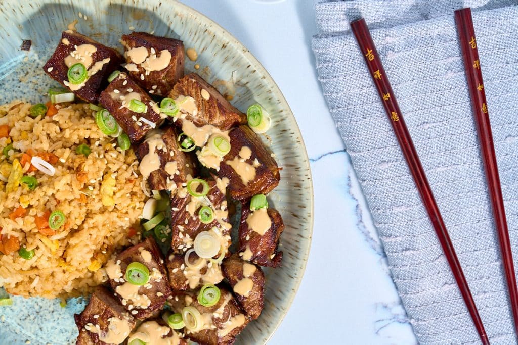 Hibachi Steak with Mustard Soy Sauce on Your Bull Grills Griddle