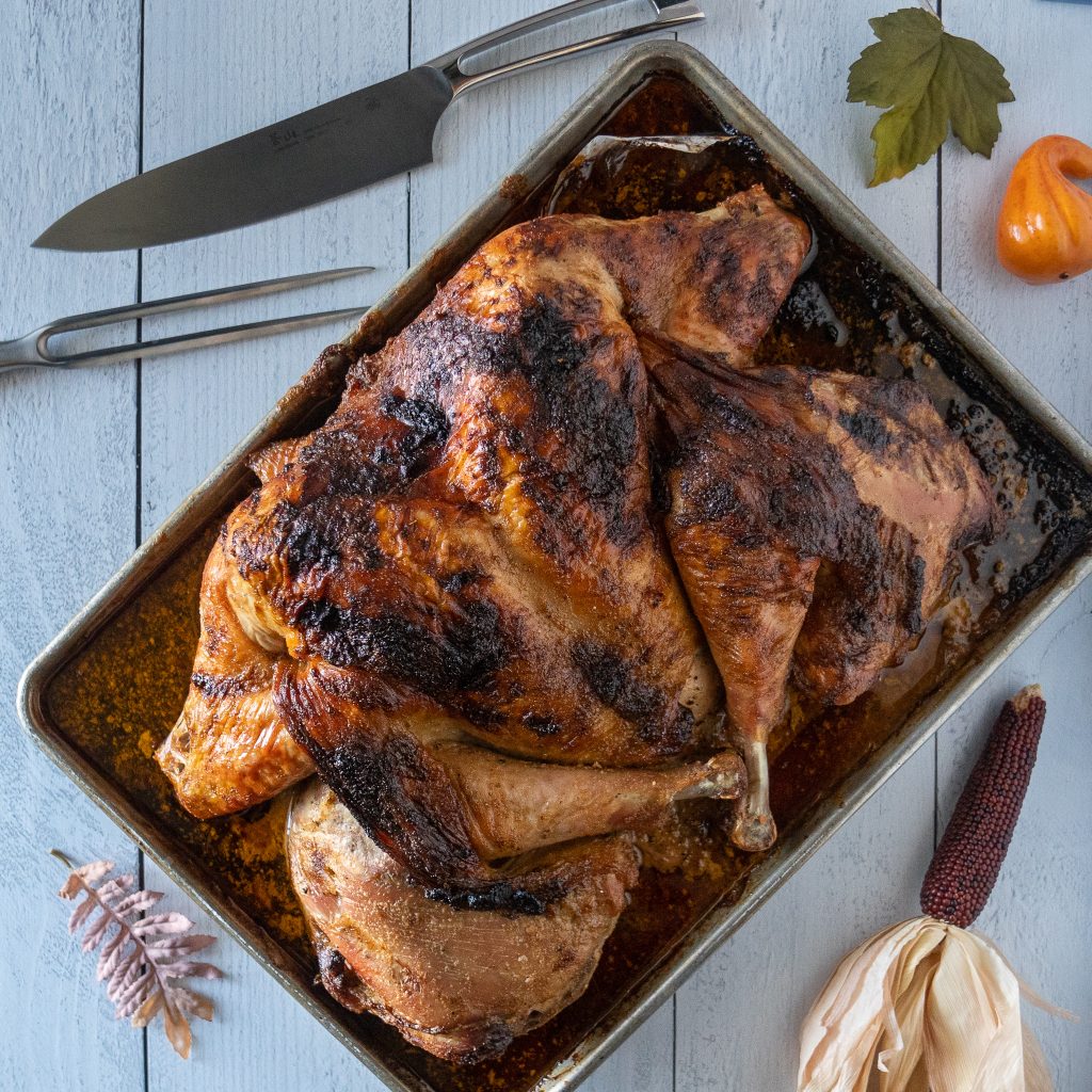 For the longest time, I dreaded Thanksgiving and the dreaded overcooked and dry Turkey. That is until I discovered the magic that is the spatchcock method on a Bull Grill. As it turns out cooking a juicy and flavorful turkey for Thanksgiving or any time of the year is actually very easy. And yes, this method works on other poultry! Cooking a turkey in the conventional method, with its odd shape, creates areas that cook slower than others which is what leads to an undercooked or overcooked turkey.