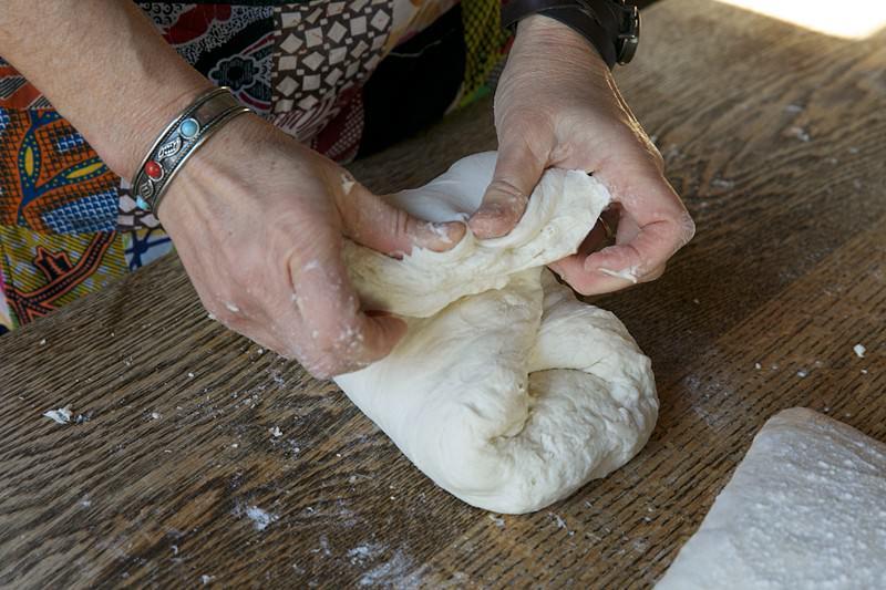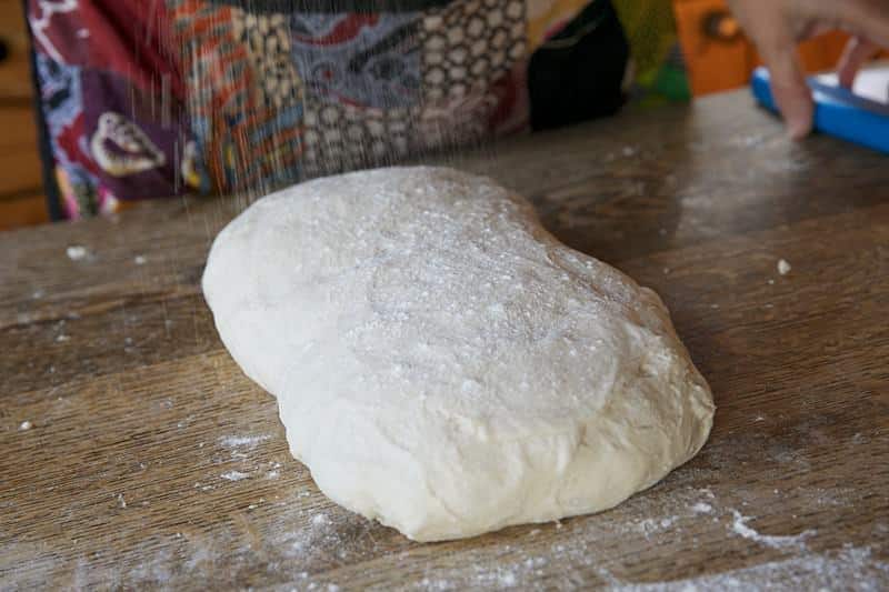 Portion the dough: If you have divided the dough into multiple portions, work with one piece at a time, keeping others covered to prevent drying out. Dust your hands with flour to prevent sticking.