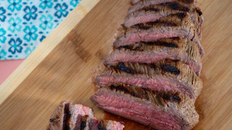 Be sure to cut against the grain when slicing your tri-tip. You’ll notice that at the wider part of the steak the grain runs a different direction; when you reach this point turn the steak so that it is easier to slice. I like slicing thicker cuts of steak but the thickness of the slices is a personal preference.