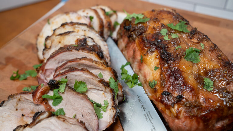 Pork tenderloins are always a favorite at my house but I also love using pork loin which is cheaper and if prepared correctly full of flavor. The trick is not overcooking your pork loin and creating a marinade to keep the pork juicy. I love combing ginger, garlic, and herbs to create a flavor-packed marinade.