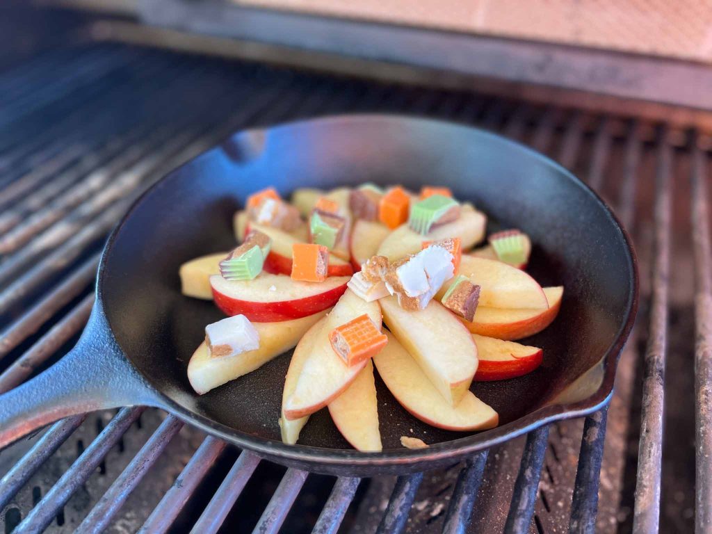 5. When the apples have softened slightly and the chocolate has melted remove the grill.