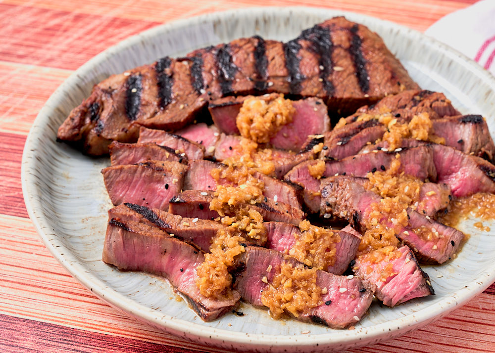 - Sprinkle sesame seeds over the steak and serve the ginger sauce on the side or drizzle on top.