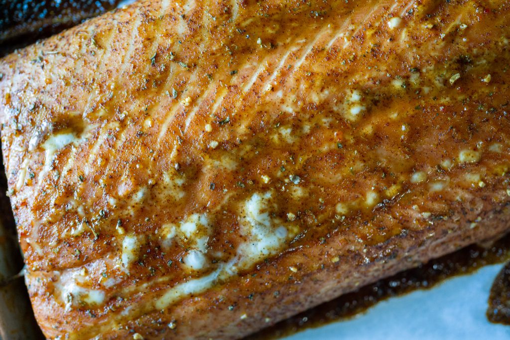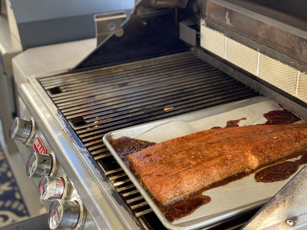 Chef Anthony Pro Tip – Use a heavy-duty baking pan to grill your salmon on. Because of the weight and heat, using a thin baking sheet will cause it to bend or warp.