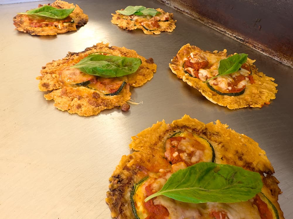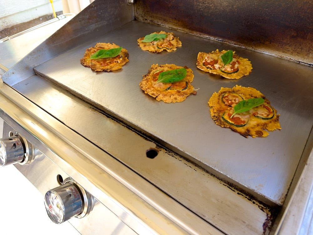 - Cover the lid of the Bull Griddle and cook on low heat for 2-3 minutes or until the cheese has crisped up and the mozzarella has melted.